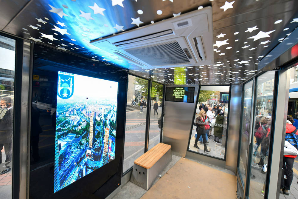 Başkente Üretimini Yaptığımız 315 adet Yeni Akıllı Otobüs Durakların Montajına başladık 06 Aralık 2022 HEM KONFORLU HEM TEKNOLOJİK İlk etapta vatandaşların yoğun olarak kullandığı 315 noktaya montajı yapılacak yeni otobüs durakları 6 tür tasarımdan oluşuyor. Tüm otobüs duraklarında Wİ-Fİ, LED ekran ve aydınlatma ile engelli ve USB şarj ünitesi yer alıyor. Enerjilerini g&uu...